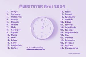 Cette section "Sorties" commence à devenir ennuyeuse ; à me croire perdue dans une boucle temporelle - et OH, ça alors, comme par hasard : la liste de #writever mensuelle concernait le temps ! Comme d'habitude, j'ai commis deux séries de trente micronouvelles, une sur Mastodon, une sur Bluesky.